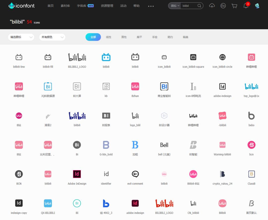 首先给需要跳过推广的应用寻找一个应用图标,例如锋哥这里演示的是 B 站,就先找一个 B 站的图标。推荐到 iconfont 网站搜索,这里基本上可以搜到所有热门主流应用的图标。