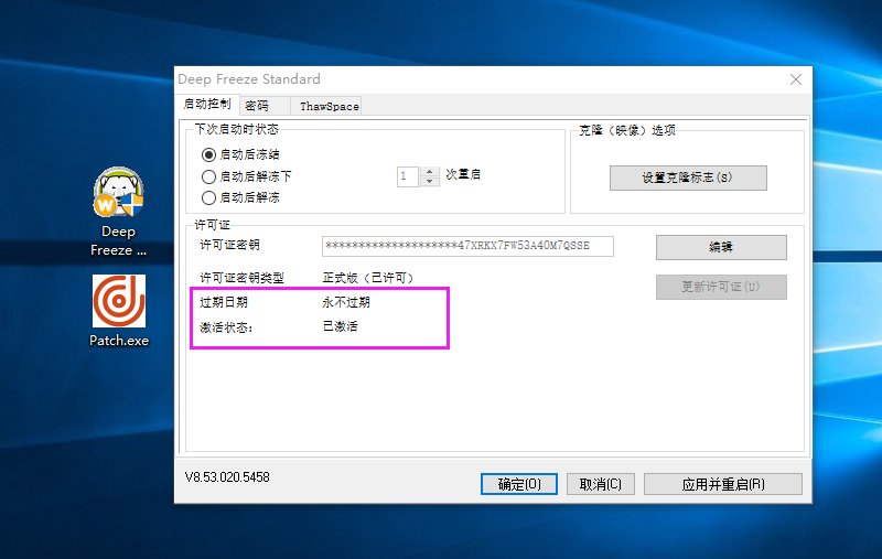 6、冰点还原Deep Freeze v8.30 版本是最后一个能用许可证密钥直接在线激活的官方版本;