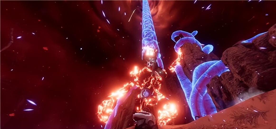 另一个不同就是本作打巨像完全靠手,没有剑插脑袋喷石油的情况,在巨像一些部位存在“弱点”,主角会拔出弱点部位然后插回去,一个部位抽插三次