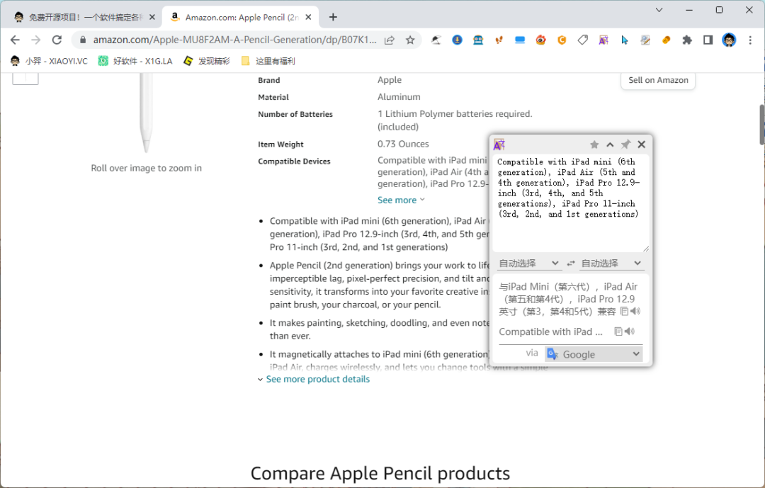 谷歌翻译不可用后,不少小伙伴寻找代替品,今天分享这个「可可翻译」支持多翻译源同时翻译,当你选中网页文本内容时,点击翻译按钮即可翻译内容了。
