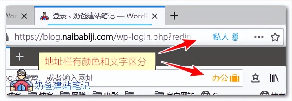 当点击对应的小号身份后,浏览器图标和标签的颜色会给你提示你现在是用的什么身份的小号窗口。
