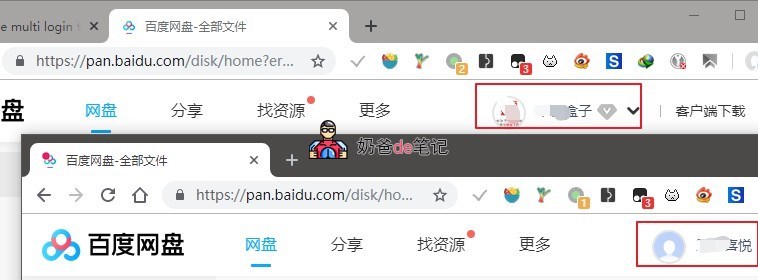 实现多开后,会通过在标签页图标上显示不同的颜色来区分多账号,如下图。
