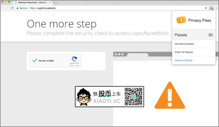 这款「Privacy Pass」扩展插件可以保存你人工选图片的次数,以后遇到需要验证就无需人工选图片了。不过当次数用完后,需要重新人工选图片进行再次保存。