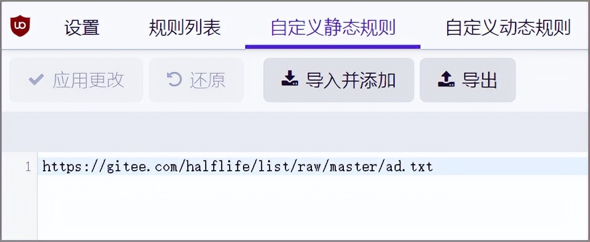 根据自己需求添加对应的过滤规则:进入「uBlock Origin」设置 → 自定义静态规则,然后添加上面提供的规则地址就可以了。