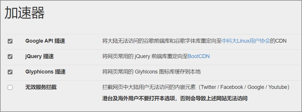 有些国外网站采用的 JS 库 CDN 或者谷歌字体会影响网站打开速度,这款「GoFW」主要功能就是把网站上的通用 JS 库地址重定向到国内的 CDN 地址,以及缓存 Glyphicons 图标,从而加快网站访问速度。