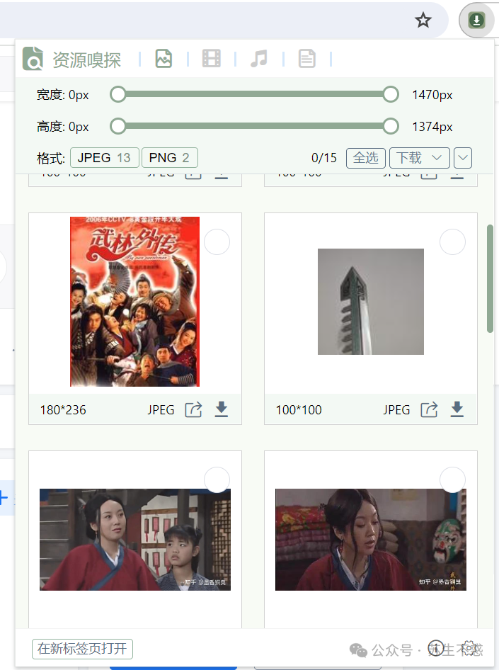 以这个知乎回答为例https://www.zhihu.com/question/642043117/answer/3396953898,点击扩展图标即可看到当前网页的所有图片,图片智能分类,自动识别。