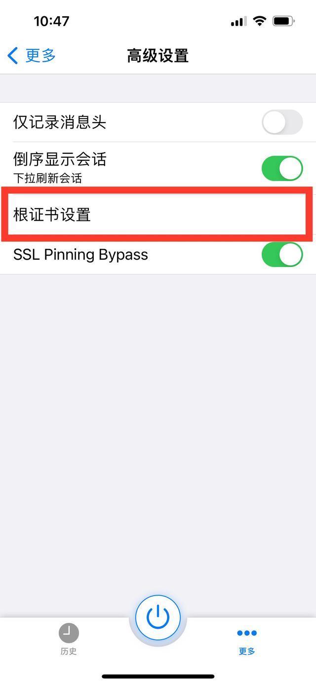 2、随后在“高级设置”里点击“根证书设置”