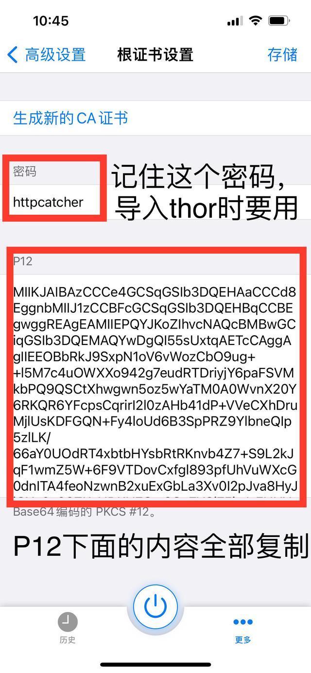 3、把P12栏里的密文全部复制,记住一定是全部复制(要往下拉一拉,密文很长)。记住密码,不出意外的话密码应该都是httpcatcher