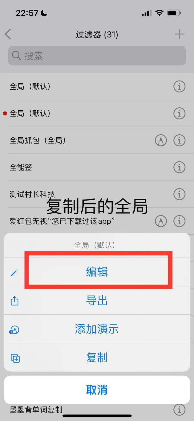 很简单,我们只要把默认的全局抓包复制一个就能修改了。