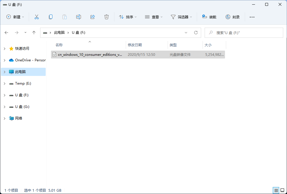 接下来只要把 ISO 镜像文件复制到U盘里面,就可以启动安装。嗯,复制粘贴总会了吧!