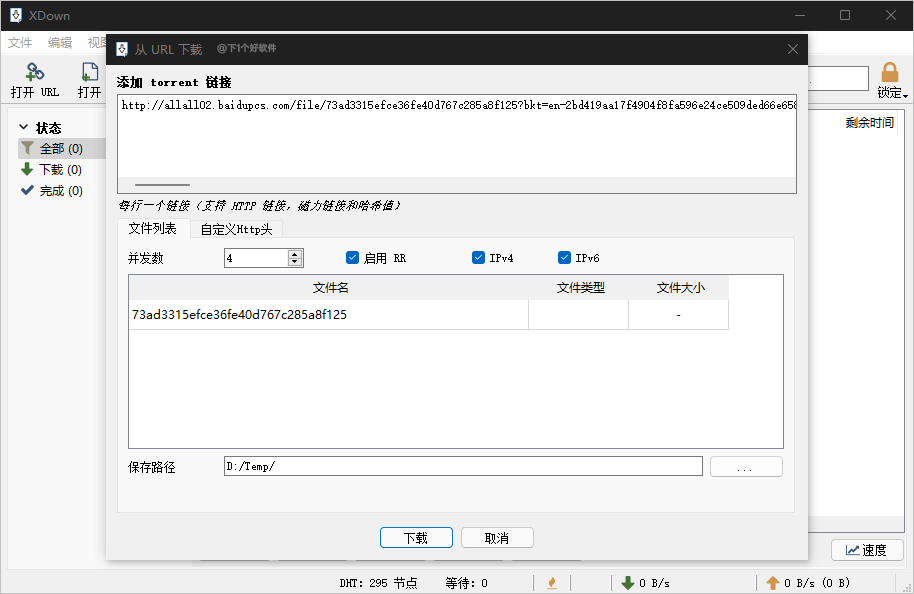 Xdown 下载工具新建下载,把获取到的直链下载地址,粘贴到里面。* 如果你是 Aria2 下载工具,无需配置就可以直接使用,详情看获取直链页面的介绍。