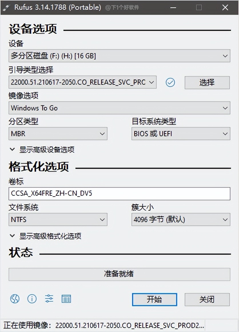 除了可以使用「WTG辅助工具」制作 Windows To Go 外,著名的系统 U 盘启动制作工具「Rufus」也拥有这项功能,使用很简单,选择 U 盘,载入镜像,镜像选择 Windows To Go,然后开始制作。