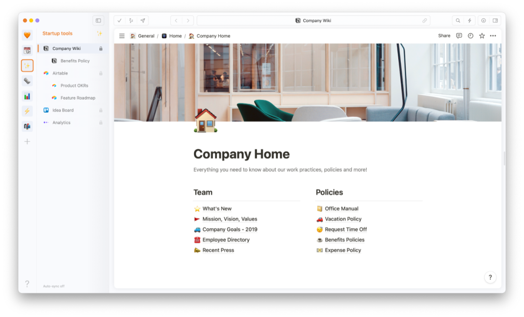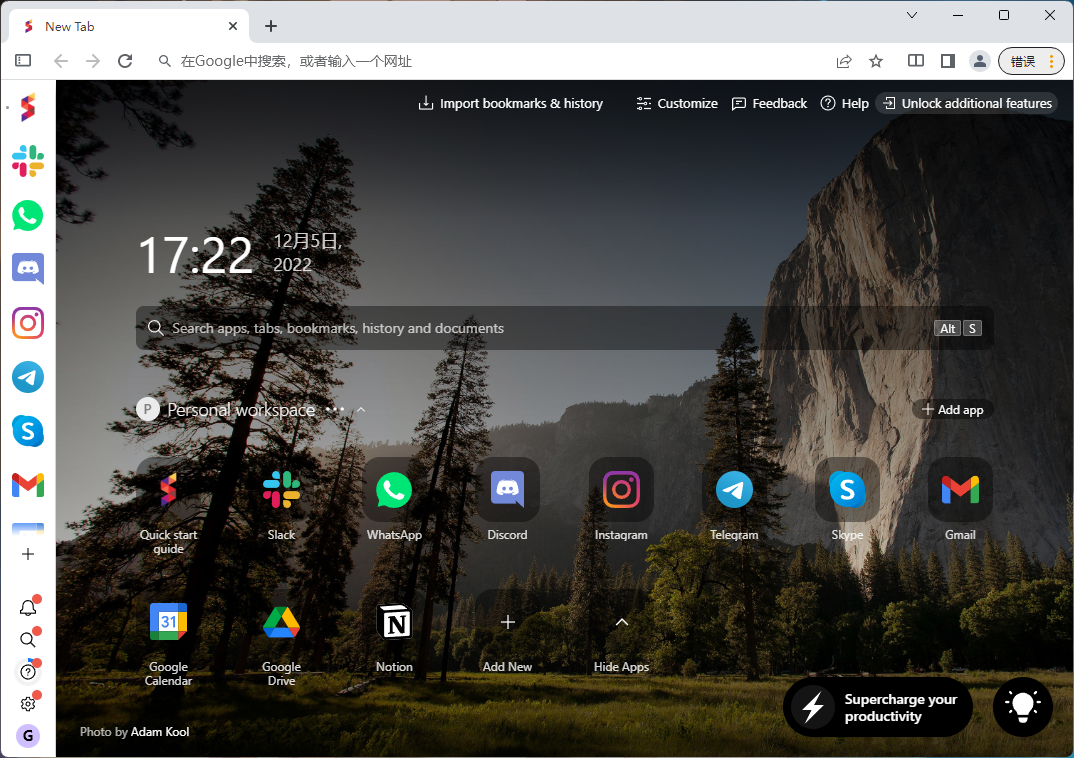 侧边栏你添加常用的网站 / PWA 应用,支持团队协作功能,强大的搜索功能,能够让你搜索你所有的文件和应用程序。