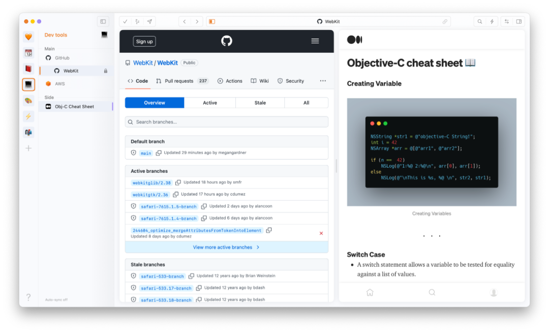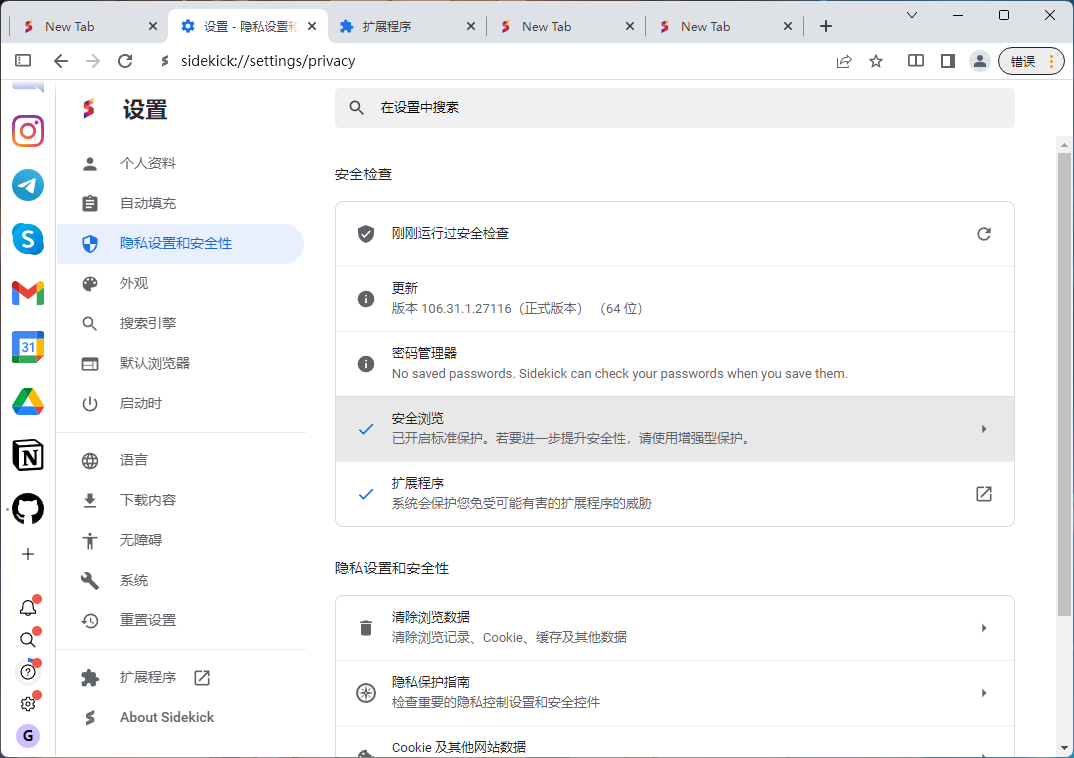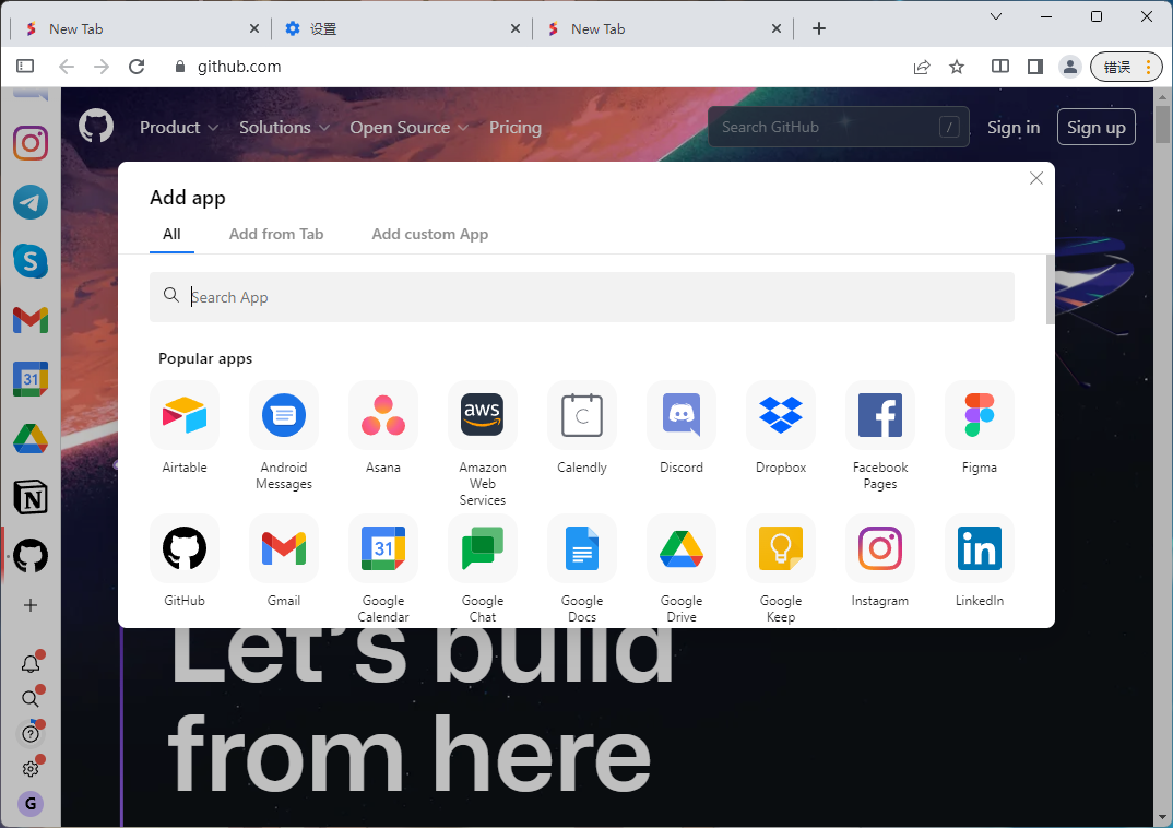 这款「Sidekick」浏览器提供了 Windows、macOS、Linux 版本下载,软件布局上也采用侧栏方式,但标签页和搜索栏还是放在了传统的上方位置。看起来只是在 Chrome 的基础上添加了侧栏罢了。