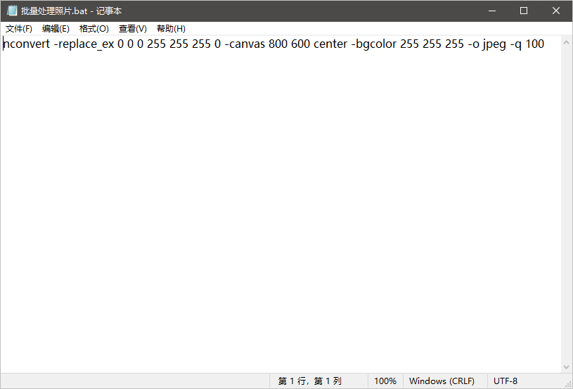 更高级的操作,为了提高批量压缩图片的效率,你还可以把方案保存为 BAT 的批量处理命令,点击按钮 “Nconvert” 生成 BAT。打开 BAT 后你可以手动修改转换的参数。