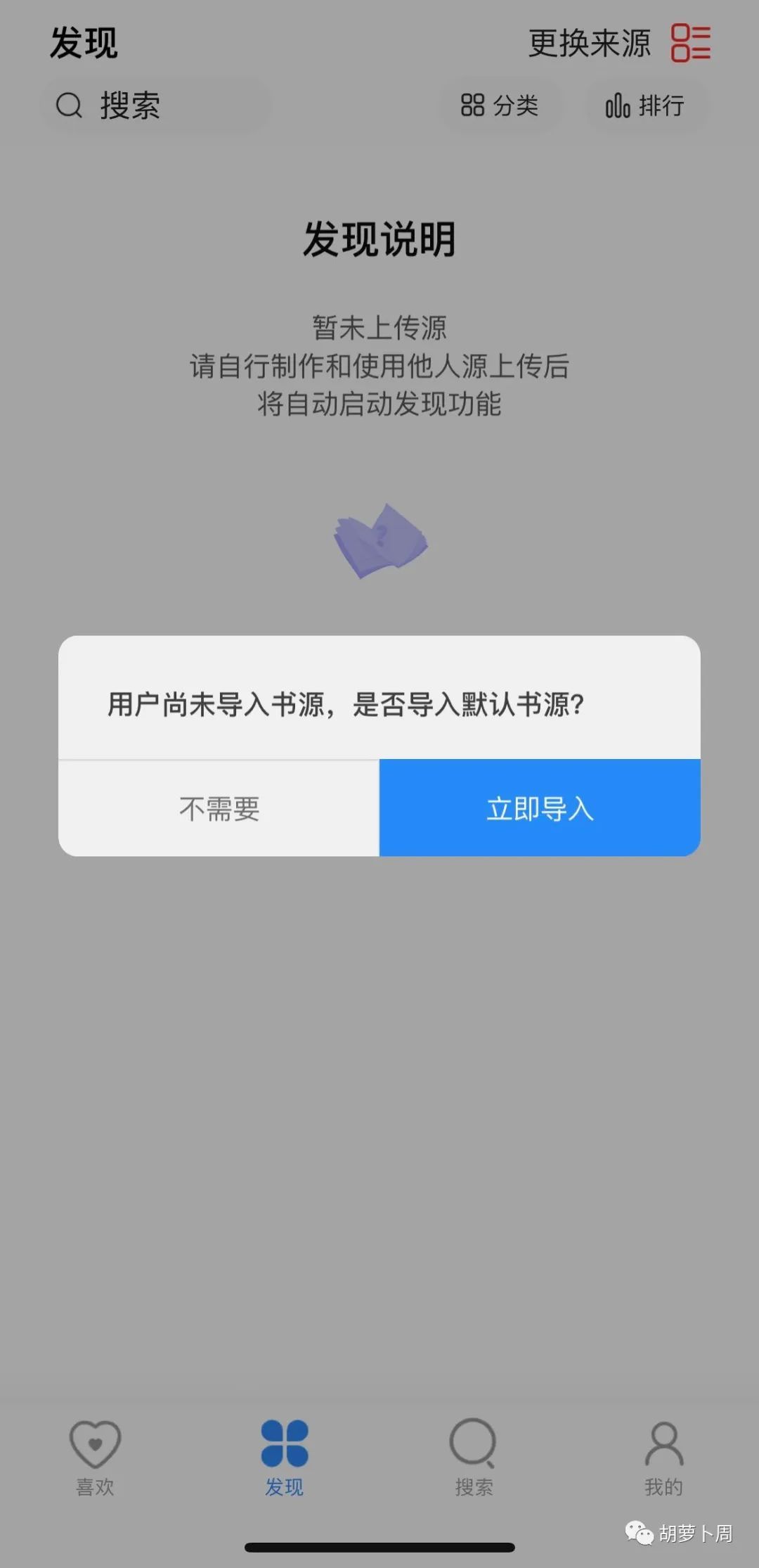 这款 APP 虽然理论上也需要导入漫画源才能观看漫画,但是首次运行过程中,会提示是否导入默认源,这个时候只要选择导入,就不用我们去辛辛苦苦找源了。