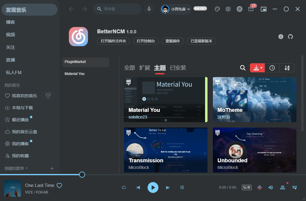 现在有个大佬制作了第三方网易云播放器插件「BetterNCM II」安装后可以提高界面的颜值、支持风格主题安装、支持扩展插件,采用苹果风歌词等等。