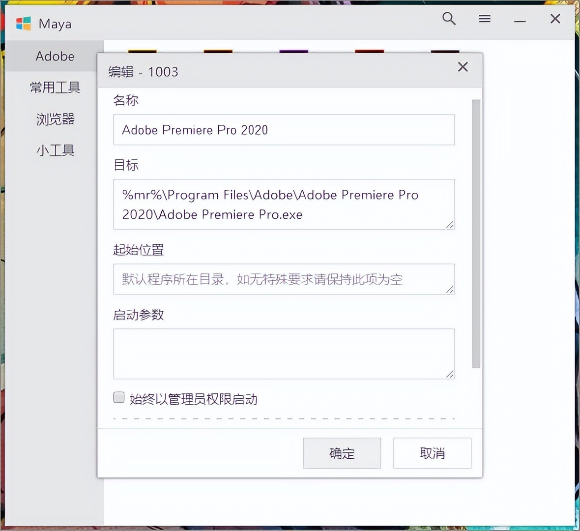 在「Maya」分组内的软件快捷方式可以通过右键来执行一些操作功能,例如管理员权限运行、最小化运行、打开方式、重建图标缓存、复制路径、打开文件所在位置。