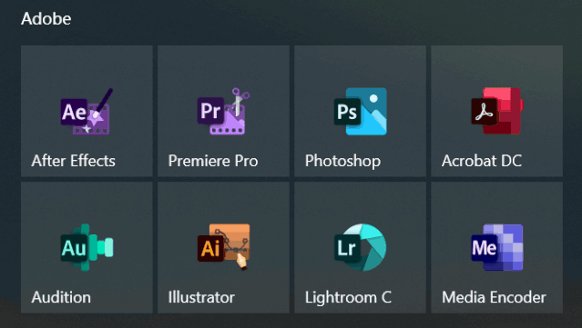 所以今天雷锋哥给大家分享一套设计师 (Thanh Nguyễn) 设计的「 Adobe 」软件 “Fluent Design” 风格图标以及其它常用软件的开始菜单图标。