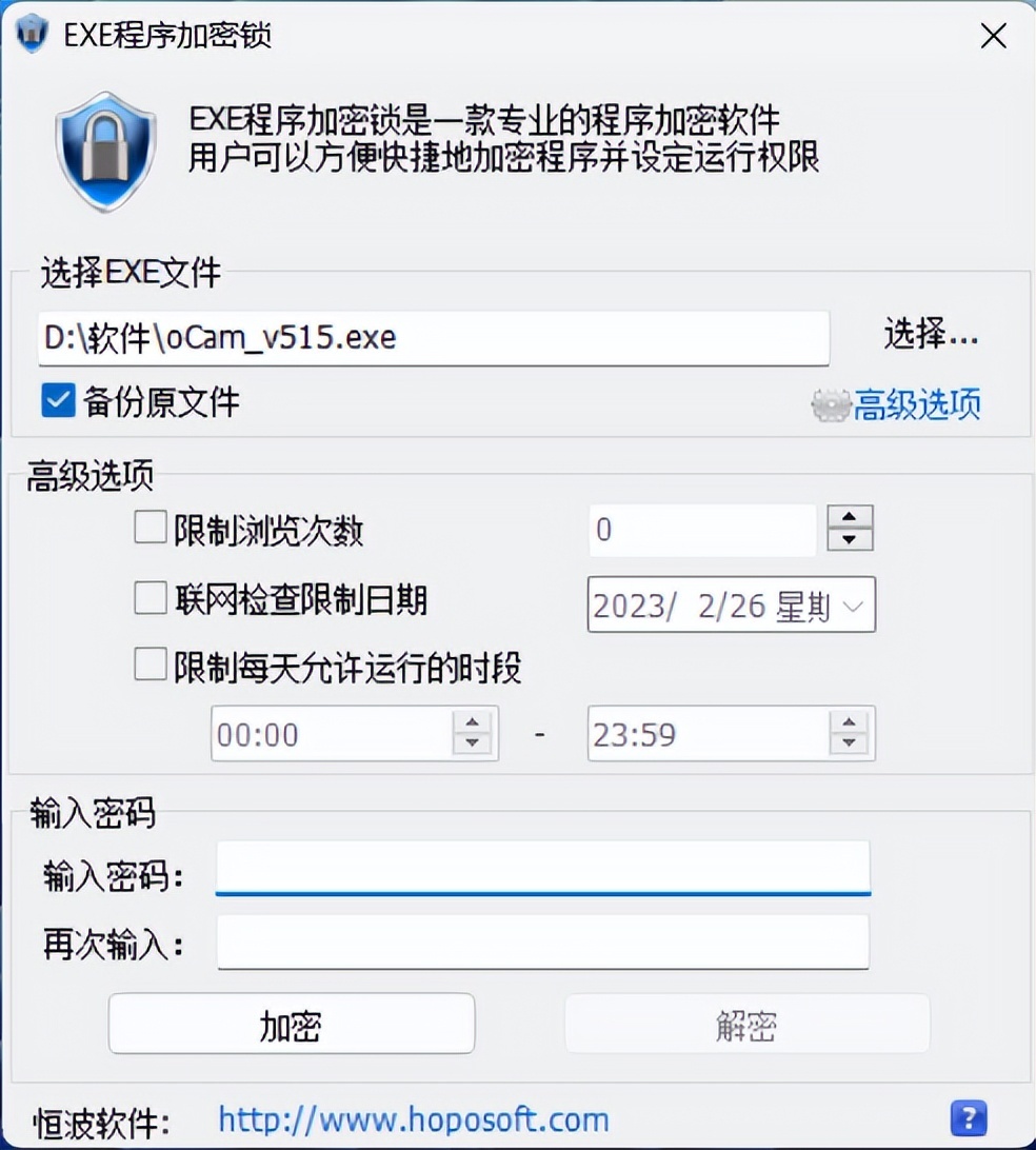 这款软件专门用于加密 exe 程序,免安装,单文件运行,可以免费使用。