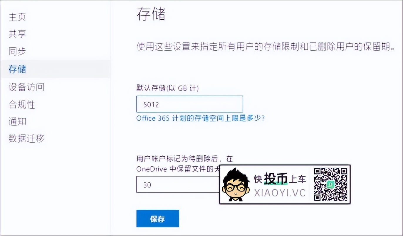 或者直接访问这个地址:https://admin.onedrive.com/?v=StorageSettings 设置。
