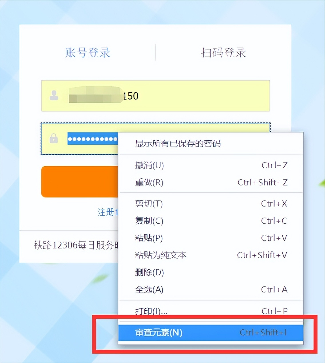 最简单的办法就是先选择被隐藏的密码,然后单击右键选择审查元素。