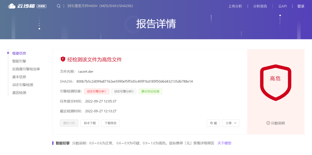 作为国内杀毒界的老大哥,一上手给人的感觉也像是老大哥一样,这个界面总感觉和微步云沙箱有几分相似。