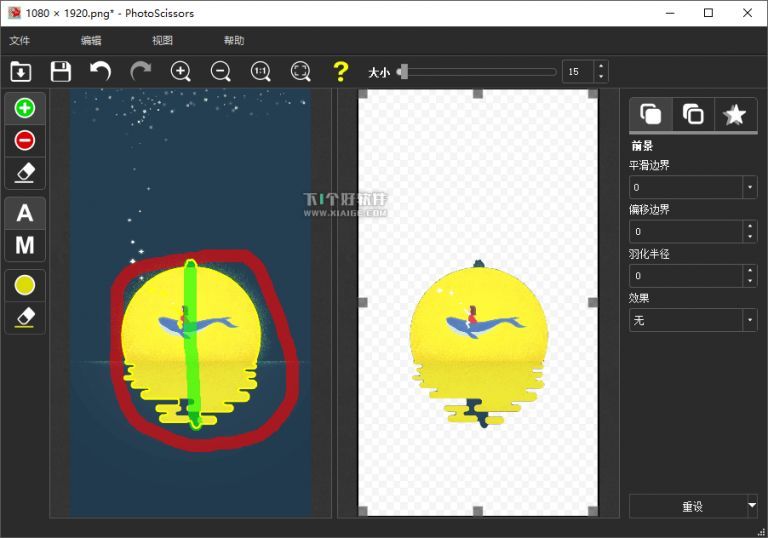 但是这类傻瓜式抠图软件算法有限,对一些复杂的图扣起来也不是特别完美,还需后期修补修正。