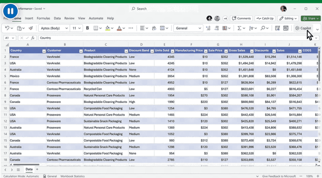 公式用得不熟练?只需点击右上角的图标,把需求交给Copilot就可以了。