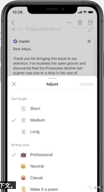 光总结邮件主题和分类还没完,它还能给你提供回复建议。内容的长短和风格同样可以随你需求改变,真正解放双手~