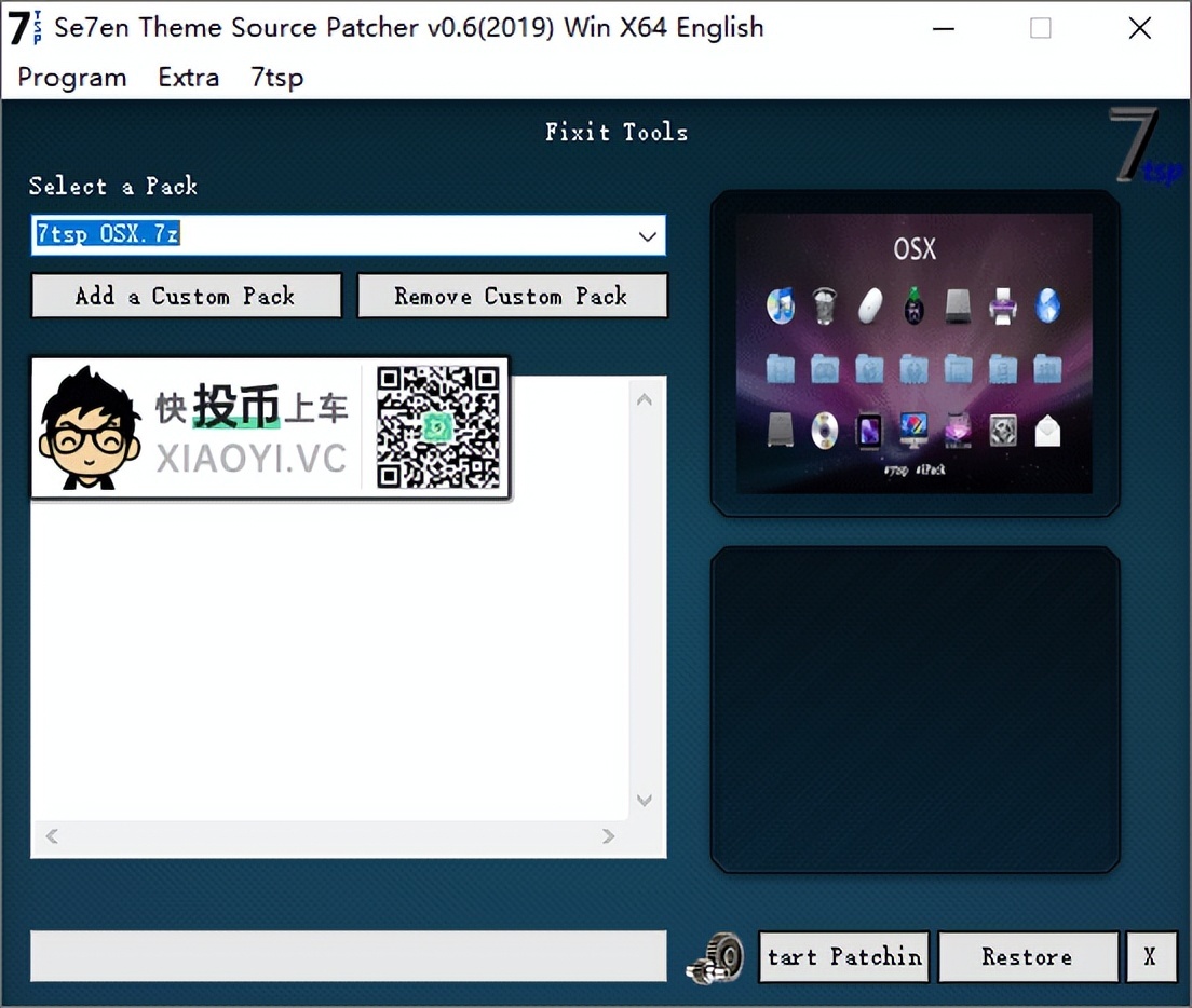 另外一种是图标包替换到DLL文件里里面,运行「7tsp GUI」软件,载入图标压缩包文件,然后点击 “tart Patchin” 开始替换。