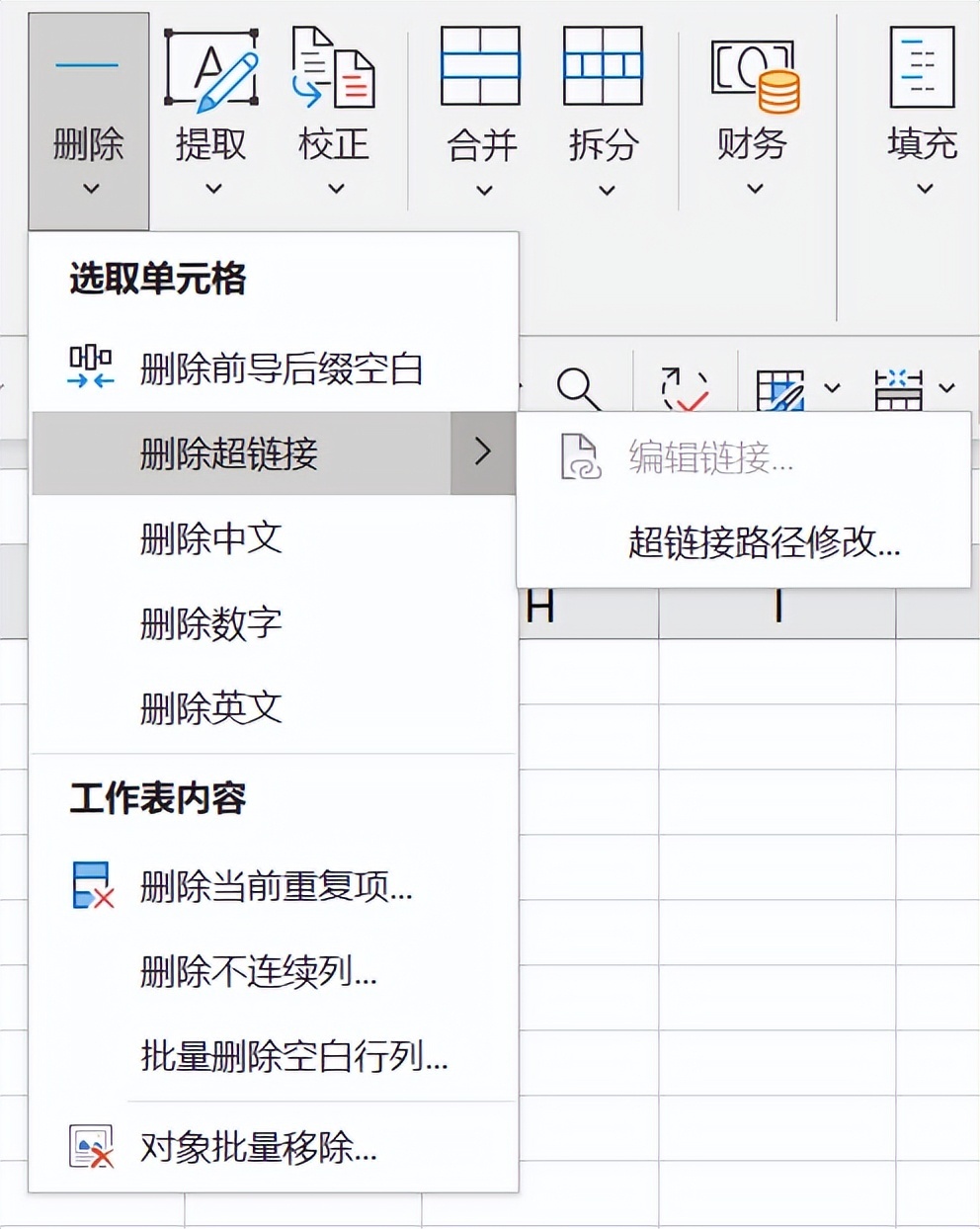 删除数据的功能可以清除指定类型的数据,针对超链接还有文本替换功能。
