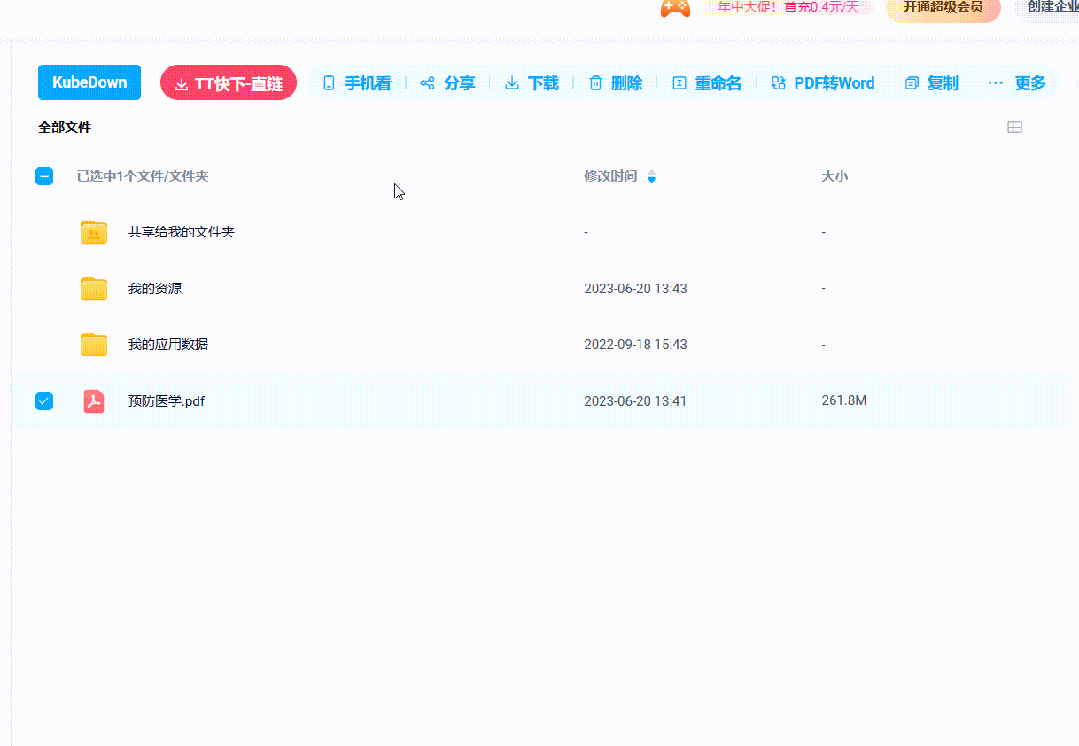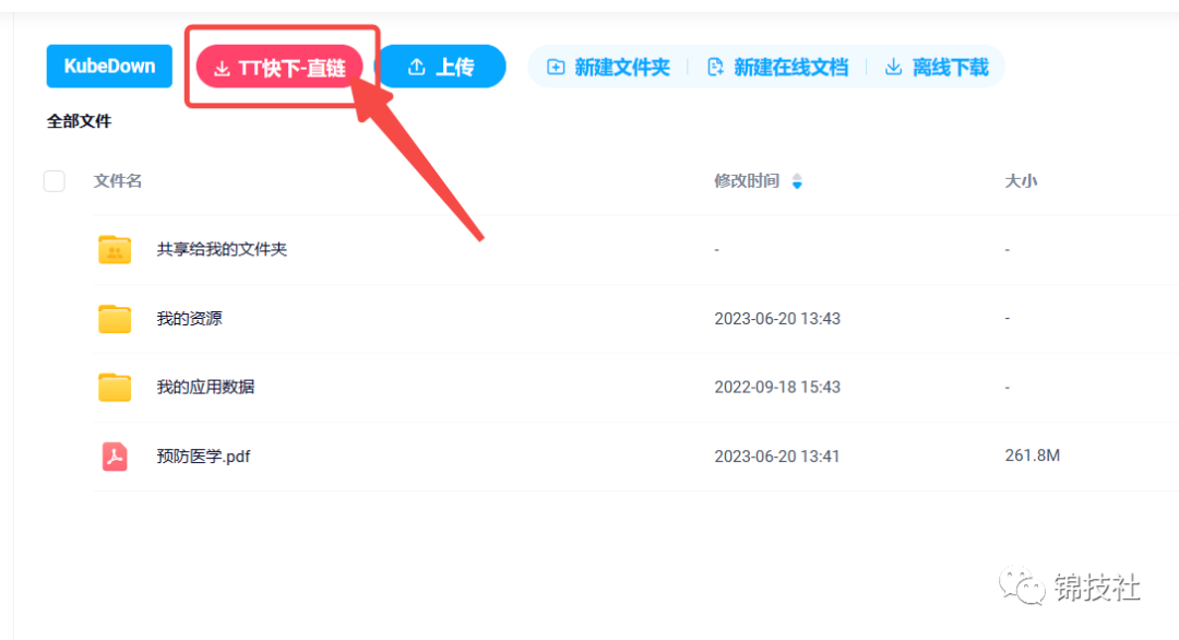 脚本安装成功后在浏览器打开度盘网页端登录,上方会显示如下“TT快下-直链”按钮。