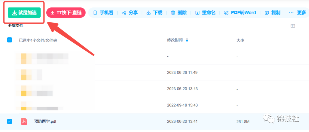 脚本安装成功后,打开度盘网页端登录,上方会出现“就是加速”按钮,先选择需要下载的文件/文件夹,然后点击上方按钮过一下白名单(点击出现的链接即可跳转过白名单)。
