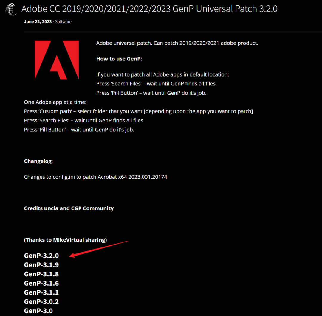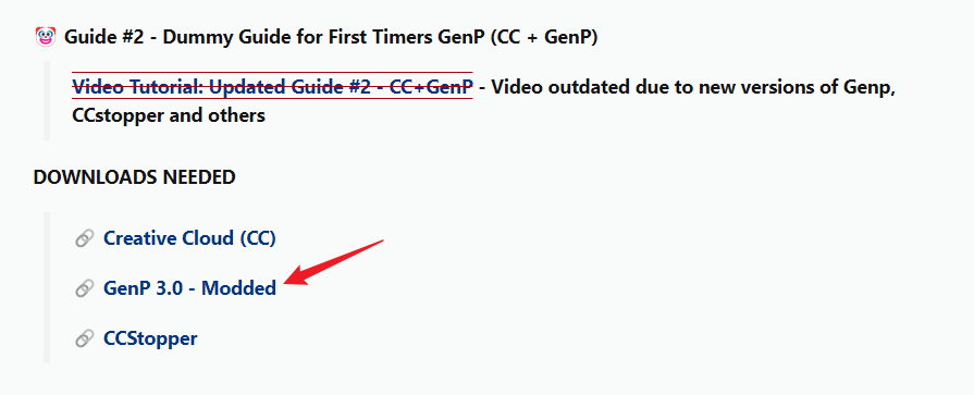 就来到了下载地址,其中:Creative Cloud是Adobe的下载安装地址;GenP3.0是补丁;CCStopper是用来禁止Adobe更新。