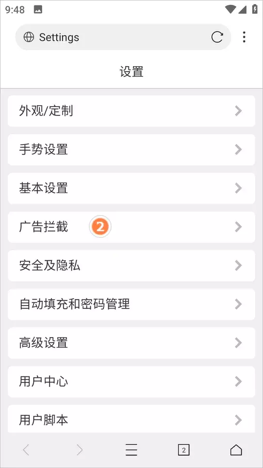 这里以X浏览器为例,其实也很简单,找到浏览器设置中的广告拦截设置,在规则文件中通过网址来导入拦截规则文件即可