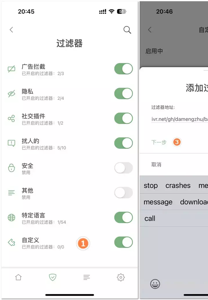 而如果你是 AdGuard 付费用户,那就简单了~ 只需要在过滤器中,点击自定义,添加网络广告拦截规则即可