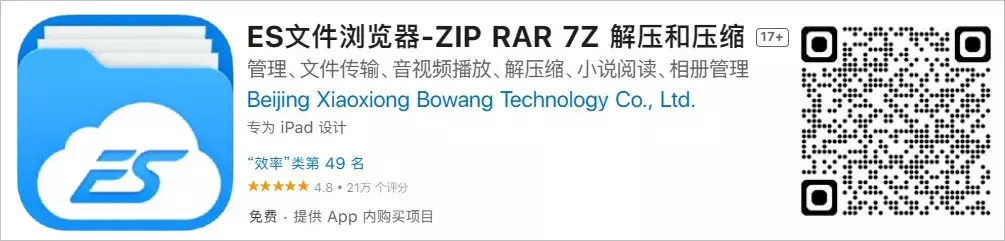 首先你需要先去 AppStore 下载一个ES文件浏览器(Documents、Alook等都可以),阿虚这里以ES文件管理器做演示