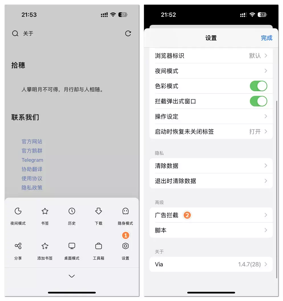 第二类就是那些可以导入广告屏蔽规则的浏览器,诸如 Via、X浏览器、嗅觉浏览器、土狗浏览器、M浏览器、B仔浏览器、TOP浏览器、油猴浏览器等