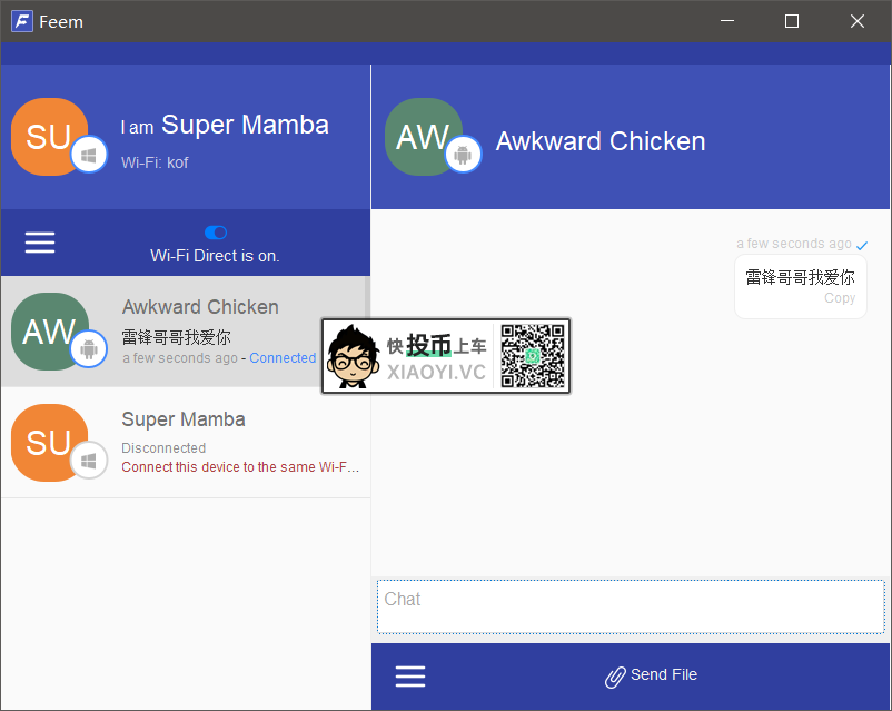 所以今天雷锋哥发现了一款口碑不错的局域网文件互传软件「Feem」并且支持全平台跨设备。