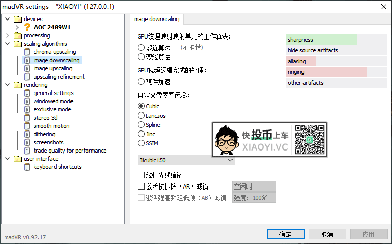 「madVr」还有一些参数设置,可以调整画面效果。大家可以折腾下,以后有机会再写一篇文章来介绍。