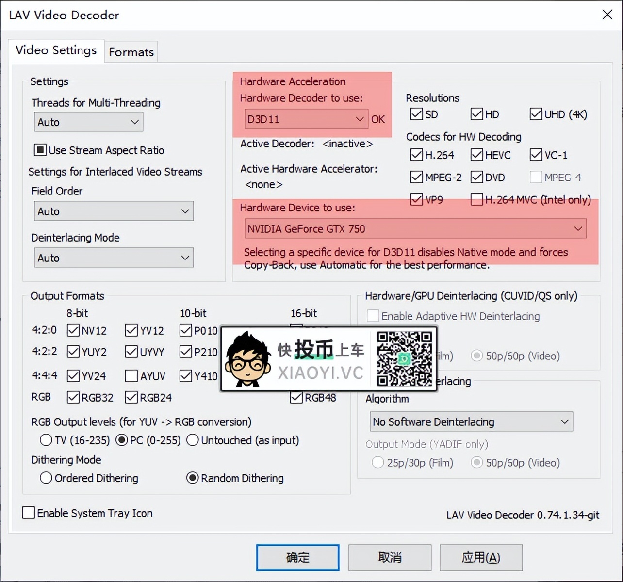 接着设置硬解,CPU够强劲的可以用软解,有独立显卡够强的可以用硬解。不过据说软解稳定性比较好。