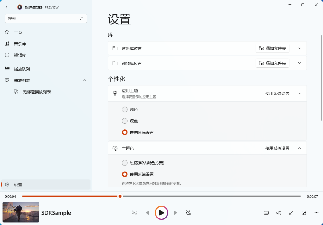 不过 PotPlayer 对于普通用户来说折腾设置起来可能太麻烦了,对画质啥没太大追求,所以可能就会用 Windows 系统自带的播放器来播放影片。现在 Windows 11 也更新了 Media Player 播放器,带来了全新的 UI 界面以及更丰富的功能。