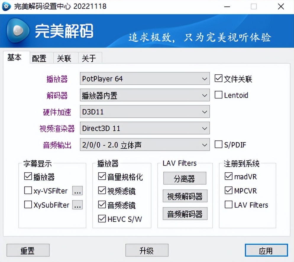 完美解码是一款为高清影视爱好者精心打造的影音解码包,能软硬件解码播放流行的视频和音频格式。