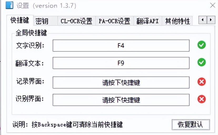 无需联网也无需申请密钥,纯本地运算,识别准确度和速度很快,操作和天若 OCR 免费版一样,F4 是截图,可以翻译,段落合并等。