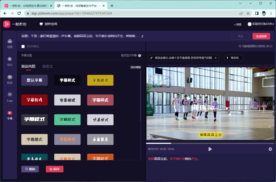 智能字幕:视频创作到最后当然少不了字幕,通过「一帧秒创」的智能字幕功能,通过匹配引擎对文本进行素材计算、字幕合成。然后支持选择字幕的风格样式,也支持自定义。
