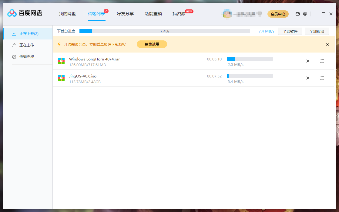 但是其中有一个度盘客户端版本,版本号为 6.7.2.16,在下载资源方面似乎没有太大的限速,不是会员的情况下载,也可以达到 2MB/s 左右的下载速度,一些热门资源更是可以达到 10MB/s。