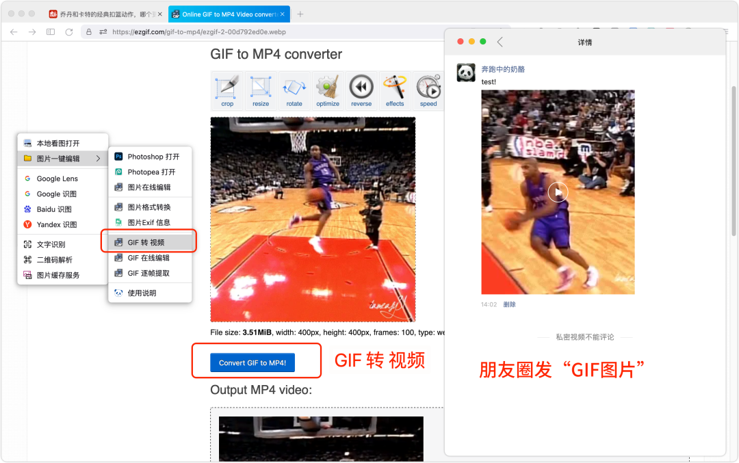 同样,如果你想把网上的 GIF 图片转换为 MP4 视频,这样就可以在朋友圈以视频的形式发“GIF 图片”了。