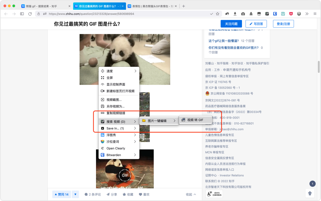 知乎上的 GIF,看似是图片,其实是视频,使用网站 EZGIF 的一键转换功能,即可将图片保存为 GIF。