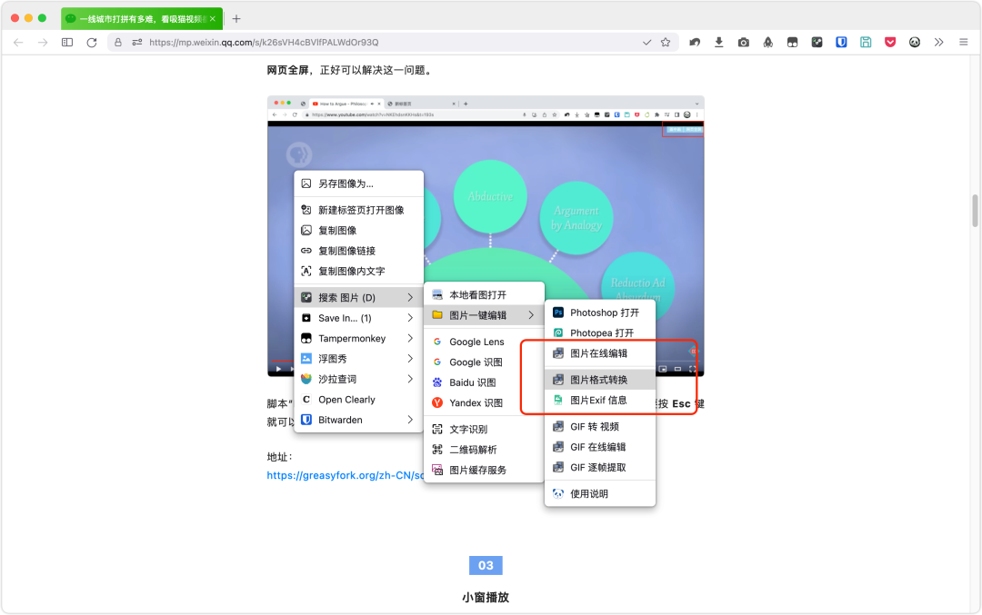 菜单里集成的“本地看图打开”,可以将网页里的图片一键在本地看图打开。